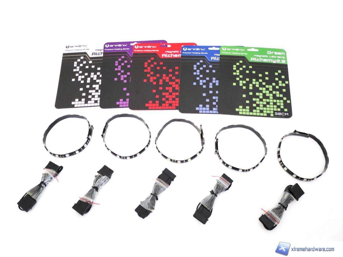 Una volta estratte dalla confezione ci troveremo di fronte le nuove Strip magnetiche BitFenix Alchemy 2.0 ed il relativo bundle. Nel dettaglio troveremo: