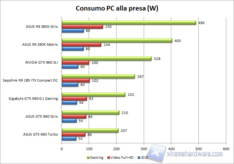 Abbiamo comparato i consumi di questa scheda video con altre VGA che abbiamo recensito ultimamente in modo da indirizzarvi meglio nell’acquisto, vi lasciamo il grafico per una migliore illustrazione: